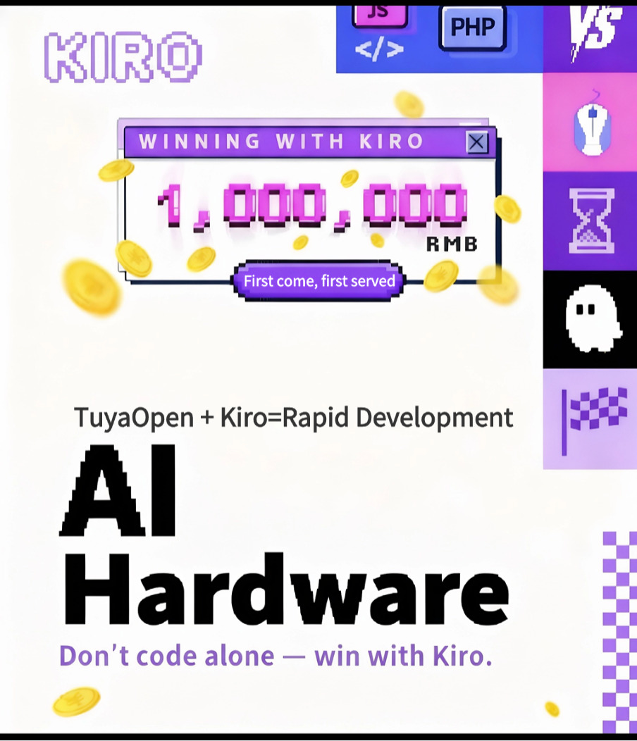 Tuya Smart welcomes developers, makers, and university teams from around the world to join this global innovation event. With AI coding powered by KIRO, participants can enjoy a low-code and fast-start development experience.